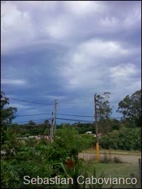 La llegada del frente frio y la tormenta hizo caer la temperatura de 36.8ºC a 21.6ºC en una hora en Salto. La máxima había sido de 41.7ºC (dato propio), la mas alta de lo que va del 2014.